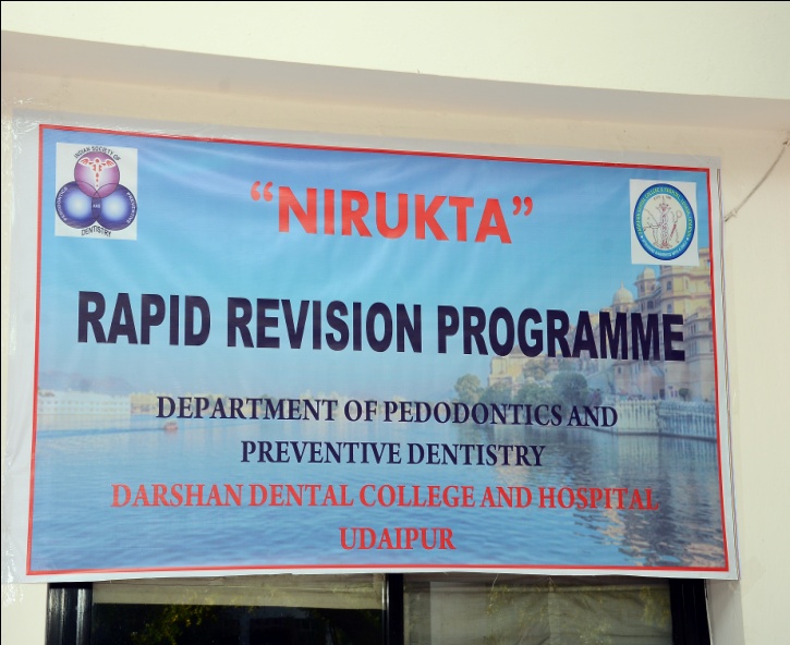 Every year students from Govt. Primary schools from various rural parts of Udaipur are brought to Darshan Dental College and Hospital, and various competitions like drawing, sports are conducted and winners are awarded. Food and basic oral hygiene products like Tooth brushes and pastes are distributed after giving proper oral hygiene instructions.